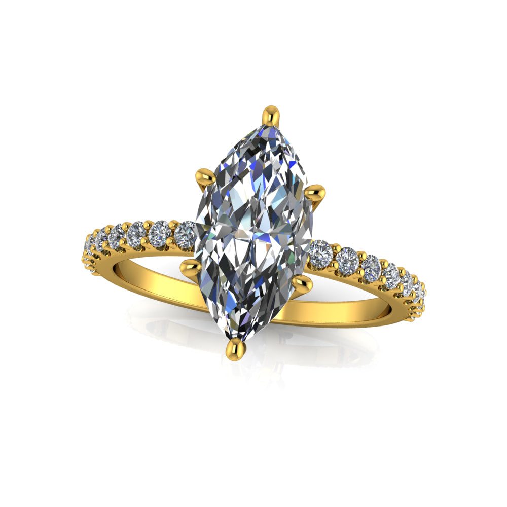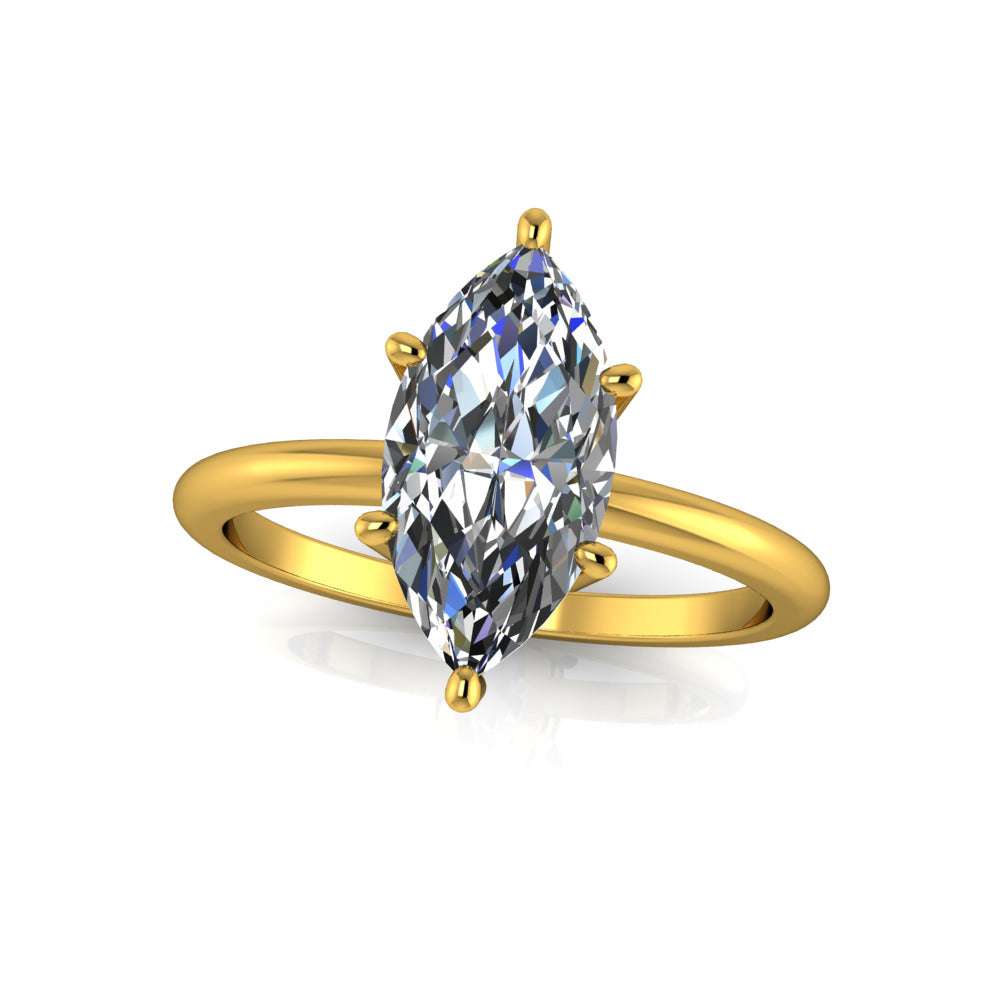 Our famous classic "Henri" design features a timeless setting & dainty wide half round band.